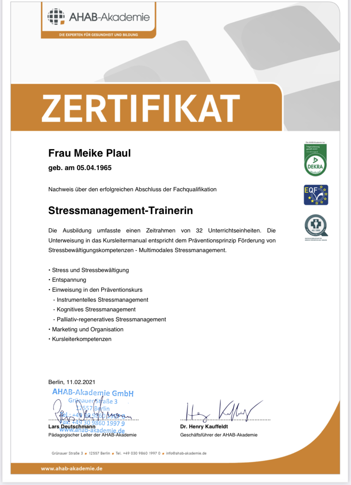 Erfolgreich abgeschlossene Zusatzqualifikationen:
